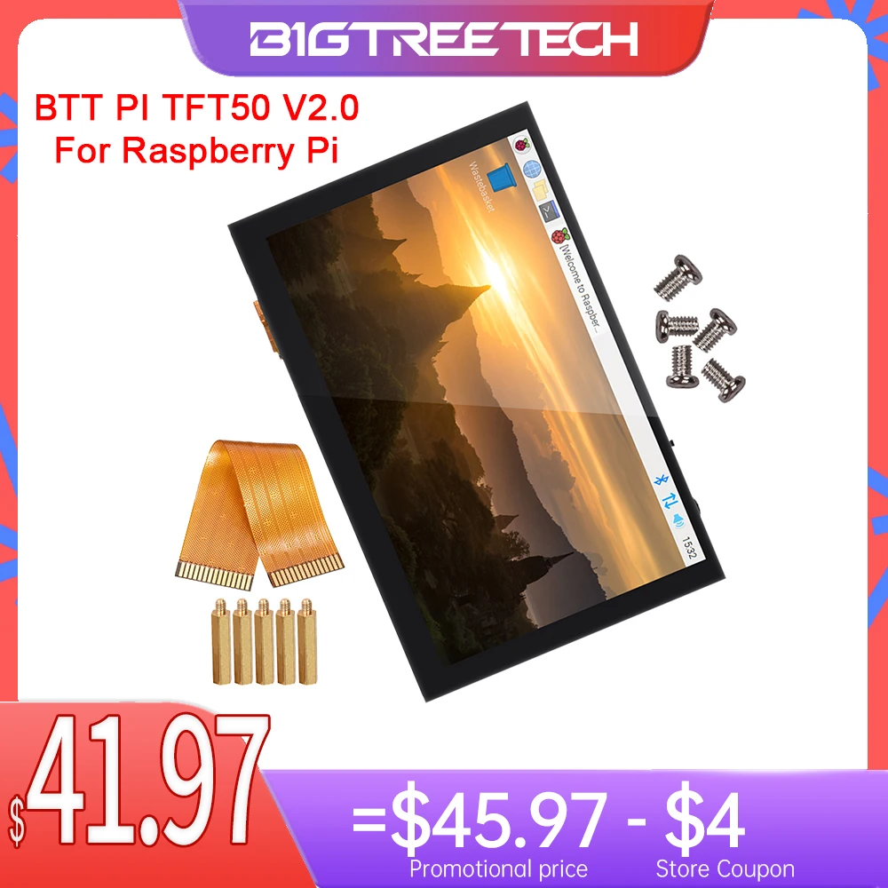 - Bigtreetech-tela para impressora 3d, peças para raspberry pi 3 3b plus 4b modelo b 800×480 5 polegadas dsi, com touch screen