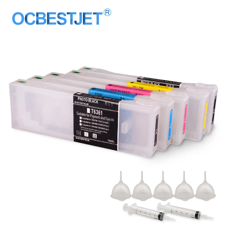 12. Cartucho de tinta recarregável vazio, 5 cores conjunto t6361 T6361 T6364 t6368 para epson stylus pro 7700 9700 7710 9710 impressora 700 ml pc